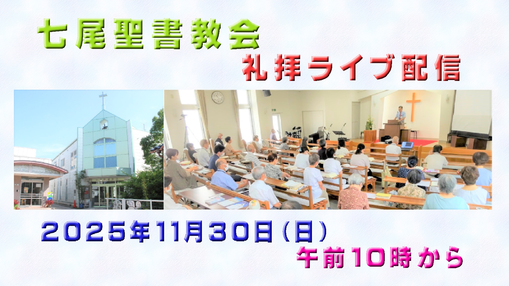 2025年11月30日(日)午前10時から七尾聖書教会において主日礼拝が行われます。礼拝に出席できない方は下記よりYouTubeによるライブ配信を行いますのでご覧になり共に礼拝を捧げましょう。